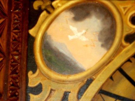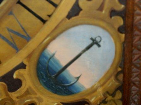 Ein Anker auf festem Grund vor der See ist im Bild unten rechts gemalt. Dieser steht als Symbol für Standhaftigkeit im Glauben.