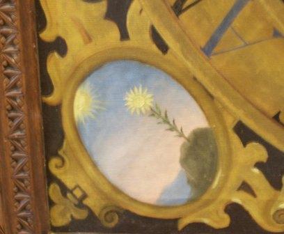 Im unteren linken Bildrand zeigt das Emblem eine Blume, die sich der Sonne zuwendet. Die Blume symbolisiert den Menschen, der sein Leben auf Gott ausrichtet.