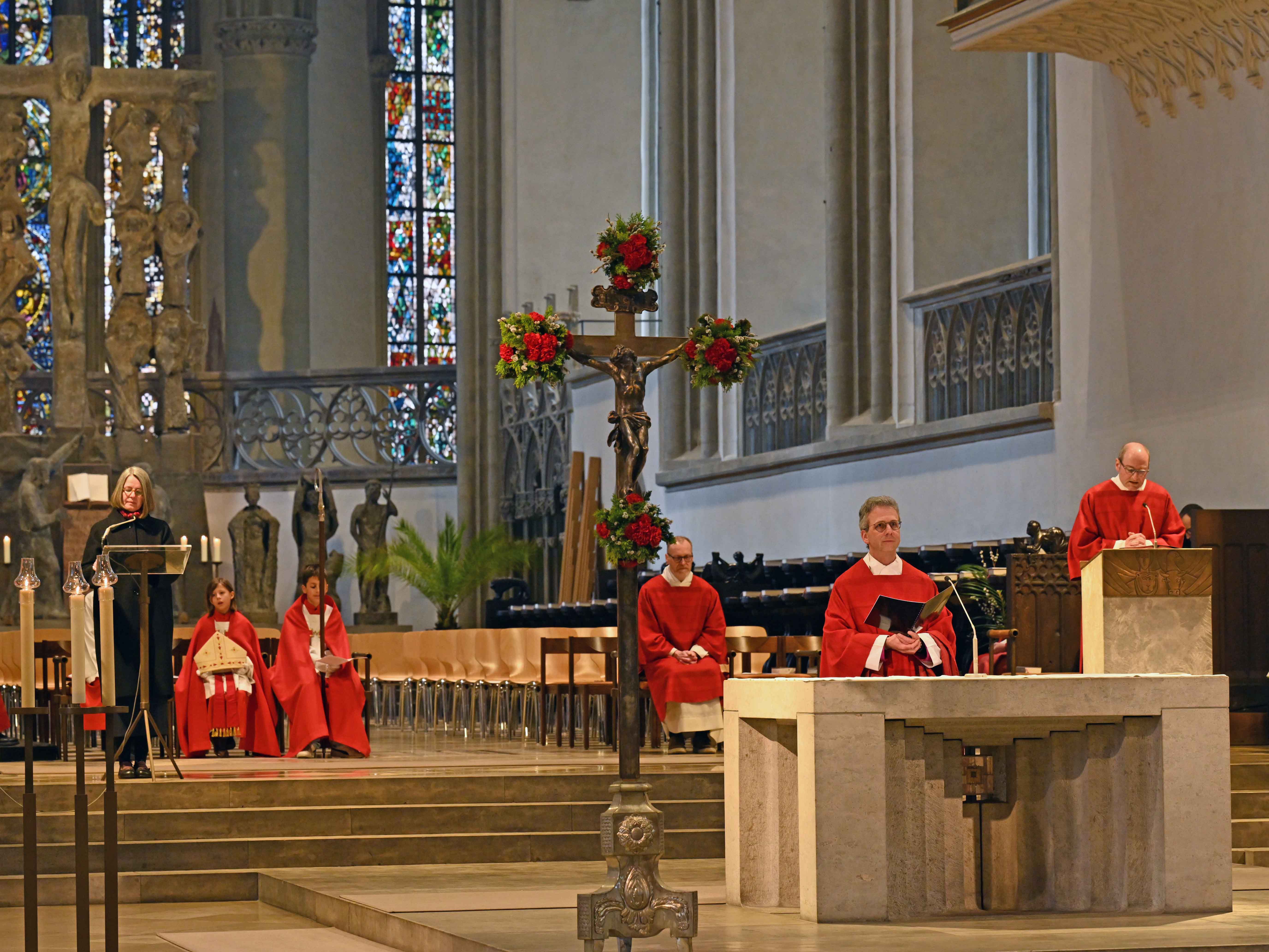 Mit dem Palmsonntag beginnt die Heilige Woche, in der Christen des Leidens, Sterbens und Auferstehens Jesu gedenken. Zu Beginn werden traditionell Palmzweige gesegnet, bei gutem Wetter ziehen im Anschluss Klerus und Gemeinde durch den Fronhof in den Dom und gedenken so des feierlichen Einzugs Jesu in Jerusalem. Das zugehörige Evangelium wird im Rahmen der Statio vor dem Domportal verkündet. Heuer war dies aufgrund von Kälte und Schneeregen nicht möglich, weshalb die Palmsegnung in den Westchor des Domes verlegt wurde. In der anschließenden Messfeier erfolgt dann ein Stimmungsumschwung, Lesungen und Passion (im Lesejahr A dem Matthäusevangelium entnommen) verweisen schon auf das Leiden am Karfreitag. Die Palmsonntagskollekte ist traditionell für die Christen im Heiligen Land bestimmt.