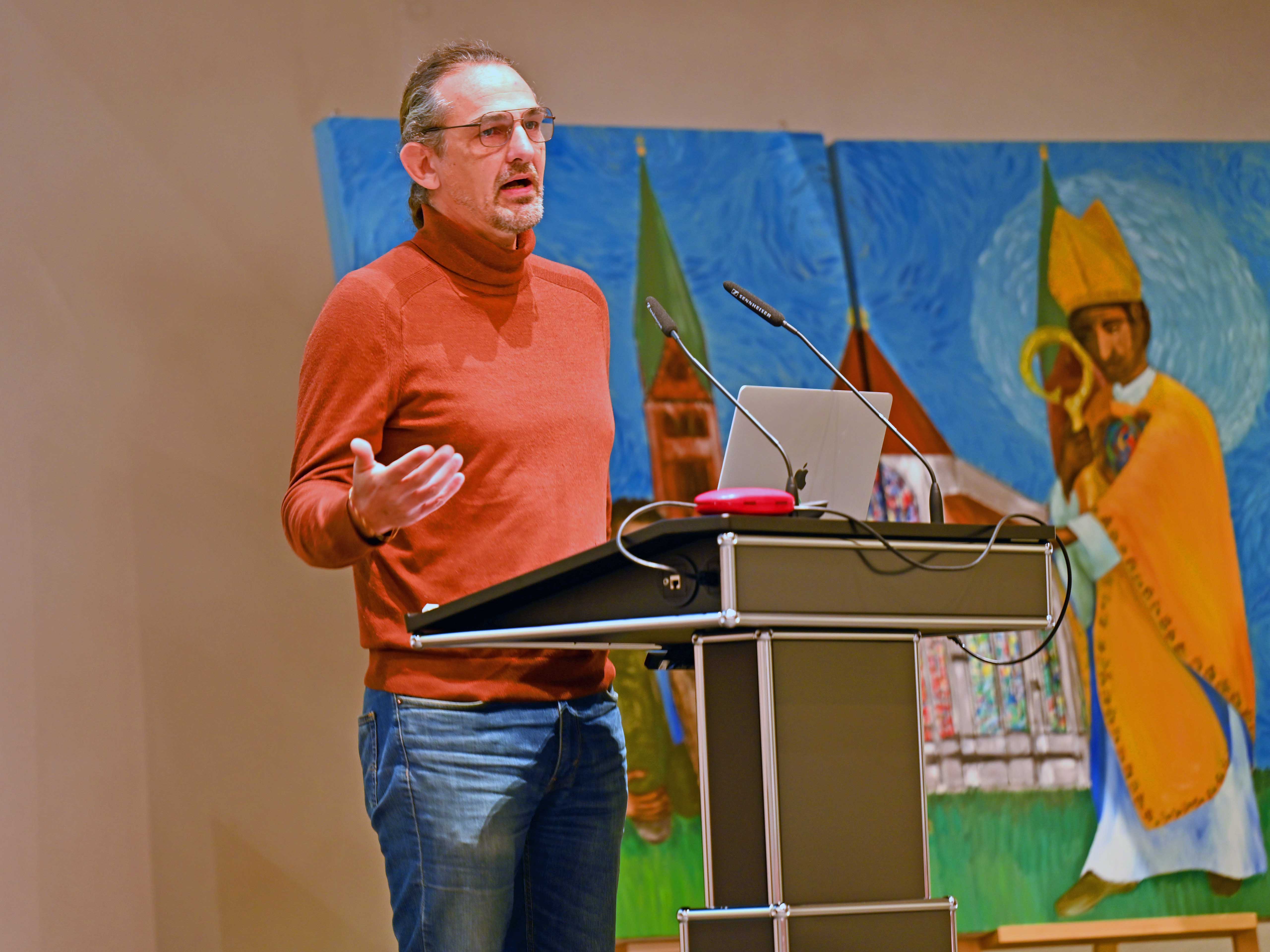 Erste Impulse hierfür konnten die Teilnehmenden bereits beim Auftaktsvortrag am Montagvormittag mitnehmen. Der Politologe und Grundsatzreferent beim Bayerischen Jugendring, Christian Schroth, zeigte ausgehend von verschiedenen Jugendstudien und -berichten auf, wie die Generation der unter 30-Jährigen denkt und fühlt. So betonte er gleich zu Beginn, dass sich der Trend hin zu konservativen Meinungen und Werten fortsetze. Gleichzeitig seien viele jüngere Menschen voll Sorge um die Gesellschaft, aber auch aufgrund politischer Unsicherheiten. Überraschend sei auch, dass sich die Zahl der psychisch kranken Jugendlichen seit dem Ende der Coronapandemie nicht verbessert habe. Vielmehr mache sich nun auch das Thema Einsamkeit bemerkbar, von dem in den vergangenen Jahrzehnten meist eher ältere Menschen betroffen waren. Die Jugendarbeit könne hier ein wichtiges Element der Prävention darstellen, richtete sich Schroth an die Enagierten in der Jugendpastoral.