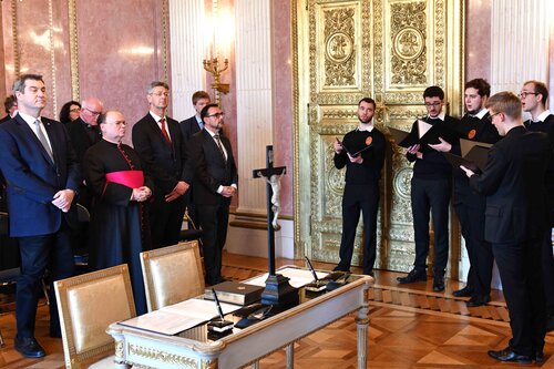 In seiner Ansprache würdigte Prälat Meier das Verhältnis zwischen dem Freistaat Bayern und der katholischen Kirche. „Es ist gut – und es soll gut bleiben“, betonte er. Als Bischof werde es ihm ein ganz besonderes Anliegen sein, „die Demokratie in unserer Heimat zu schützen und zu stärken, das gute Verhältnis von Staat und Kirche im Freistaat Bayern auch künftig zu pflegen, zu vertiefen und bei Bedarf in der angezeigten Weise einvernehmlich weiter zu entwickeln.“ Zugleich bedankte er sich für die harmonische Zusammenarbeit. „Das ist keine Selbstverständlichkeit. Vergelt's Gott dafür!“