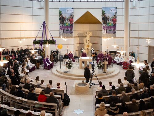 Das Lateinamerika-Hilfswerk Adveniat hat die Jugend in Lateinamerika und der Karibik in den Mittelpunkt der diesjährigen Weihnachtsaktion gestellt. „Adveniat sorgt mit seinen Partnerorganisationen vor Ort dafür, dass Jugendliche ihr Schicksal selbst in die Hand nehmen und Perspektiven für sich und unsere Welt entwickeln können“, erklärte Adveniat-Hauptgeschäftsführer P. Dr. Martin Maier SJ. Für Bischof Bertram ein klares Zeichen und ein starkes Engagement, um die Dynamik von Hoffnungs- und Perspektivlosigkeit zu überwinden. Das Motto „Glaubt an uns – bis wir es tun!“ fordere alle auf, hoffnungsvolle adventliche Menschen zu werden. „Lassen Sie uns deshalb Hoffnungsträgerinnen und Hoffnungsträger sein, die wie die jungen Menschen aus Lateinamerika zeigen, dass es trotz einer dunklen Welt unendlich viel Hoffnung gibt“, forderte der Bischof die Gottesdienstbesucherinnen und -besucher in der Kirche Maria unterm Kreuz in Königsbrunn auf.