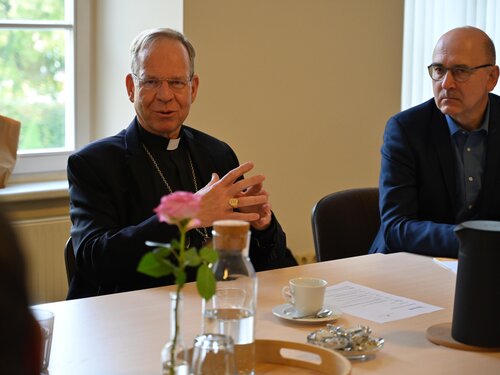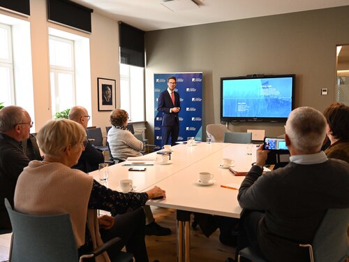 „Unser Ziel ist es, die Rolle der Kirche in einer nicht religiös geprägten Gesellschaft zu stärken. Wir wollen das Evangelium und die christlichen Werte zu den Menschen bringen“, stellte der Erzbischof von Riga, Dr. Zbignevs Stankevičs, die Schwierigkeiten katholisch-kirchlichen Agierens in der Diaspora-Situation Lettlands vor. Möglichkeiten hierfür bietet das Religionswissenschaftliche Institut RARZI, ein gefördertes Projekt von Renovabis und gleichzeitig Ort der Gesprächsrunde mit den Vertreter/-innen aus Deutschland. „Es hat gute Früchte gebracht, dass wir Pfarreien aktiv besuchen, um junge Menschen für das Studium und die pastorale Arbeit im Anschluss zu begeistern“, so der Erzbischof weiter. Angeschlossen an die Standards der Lateran-Universität bietet die universitäre Einrichtung eine Reihe von akademischen Programmen in den verschiedenen Bereichen der Religionswissenschaften an.