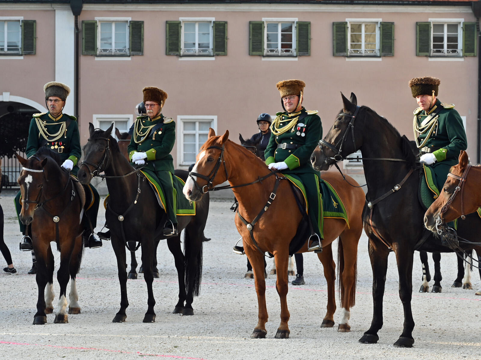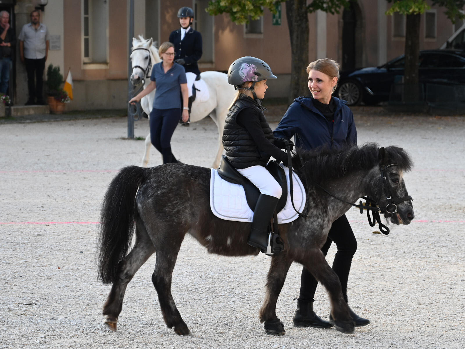 Kurz nach 18 Uhr erreichte die im fünf Kilometer entfernten Gögglingen gestartete Reiterprozession den Klosterhof der altehrwürdigen Abtei in Wiblingen. Unter den festlich gekleideten Reitern und Tieren befand sich auch eine Kutsche, die den kleineren Teil der Wiblinger Kreuzesreliquie zurück an ihren Ursprungsort beförderte. Vor exakt 925 Jahren hatten die Klosterstifter der Abtei das Kreuzpartikel überlassen. 1803, vor 120 Jahren wiederum, brachte der letzte Abt des Klosters einen Teil der Reliquie ins nahegelegene Gögglingen. Unter den Klängen des Wiblinger Heilig-Kreuz-Liedes "Heilig Kreuz, sei hoch verehret, hartes Ruhbett meines Herrn" erhielten die Anwesenden Tiere und ihre Besitzer dann den Segen mit den zusammengeführten Reliquiaren.