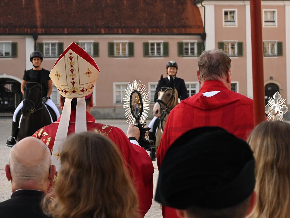 Den Segen zu empfangen durch ein 1000 Jahre altes Reliquiar – für rund 50 Reiterinnen und Reiter war dies am Freitagabend der Höhepunkt des Kreuzesfestes im Kloster Wiblingen (Bistum Rottenburg-Stuttgart), zu dem Bischof Dr. Bertram Meier als Zelebrant gekommen war. In seiner Predigt bezeichnete er das Kreuz als „großes Pluszeichen“, das Gott und Welt in Beziehung setze.