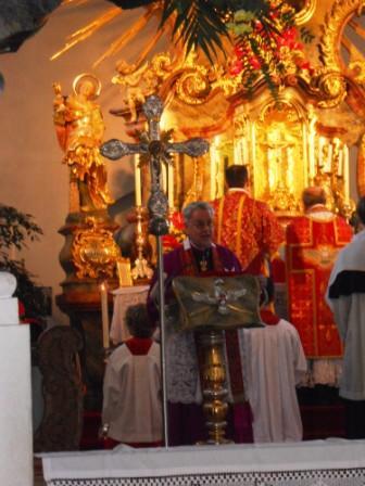 Augsburg, 25.5.2010 (pba). Über 3000 Gläubige haben am diesjährigen Pfingstsonntag, 23. Mai, die Heilige Messe mit Hauptzelebrant und Festprediger Abt Paulus Maria Weigele des Benediktinerklosters Ottobeuren am bayerisch-schwäbischen Wallfahrtsort Maria Vesperbild besucht. Abt Weigele betonte in seiner Predigt in Anlehnung an die Schriften des Heiligen Johannes vom Kreuz, dass eine Reform der Kirche, wie sie in diesen Tagen vielfach gefordert werde, „in die Tiefe“ führen müsse, „anderenfalls gerate sie zur Deformation“. Wörtlich sagte der Benediktinermönch: „Die Kirche ist kein Verein, sie ist Stiftung Gottes.“ In dem Maß, in dem der Mensch zur Kirche stehe, besitze er den Heiligen Geist. Als Menschen, die andere für Christus gewinnen sollen, seien Katholiken gefirmt, erklärte Abt Weigele.