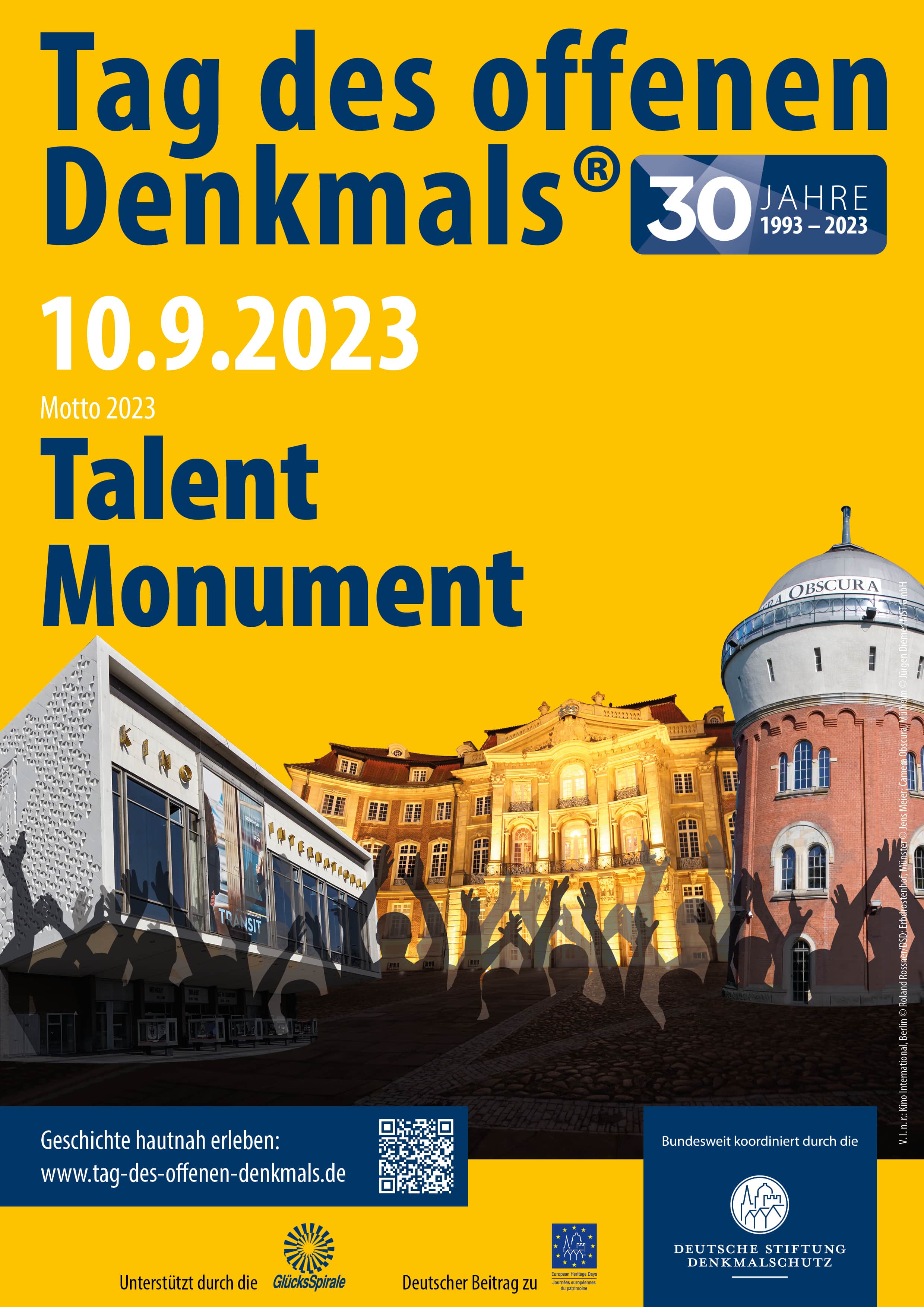 Am zweiten Sonntag im September findet jährlich die größte Kulturveranstaltung Deutschlands statt. Sie möchte die öffentliche Aufmerksamkeit auf das Thema der Denkmalpflege richten. Seit 1993 werden auf diese Weise bedeutende Gebäude der Öffentlichkeit durch besondere Angebote bekanntgemacht. Die genaue Gestaltung des Tages obliegt jeweils den Verantwortlichen vor Ort, weshalb sich ein jährlich wechselndes und besonders vielfältiges Programm ergibt.