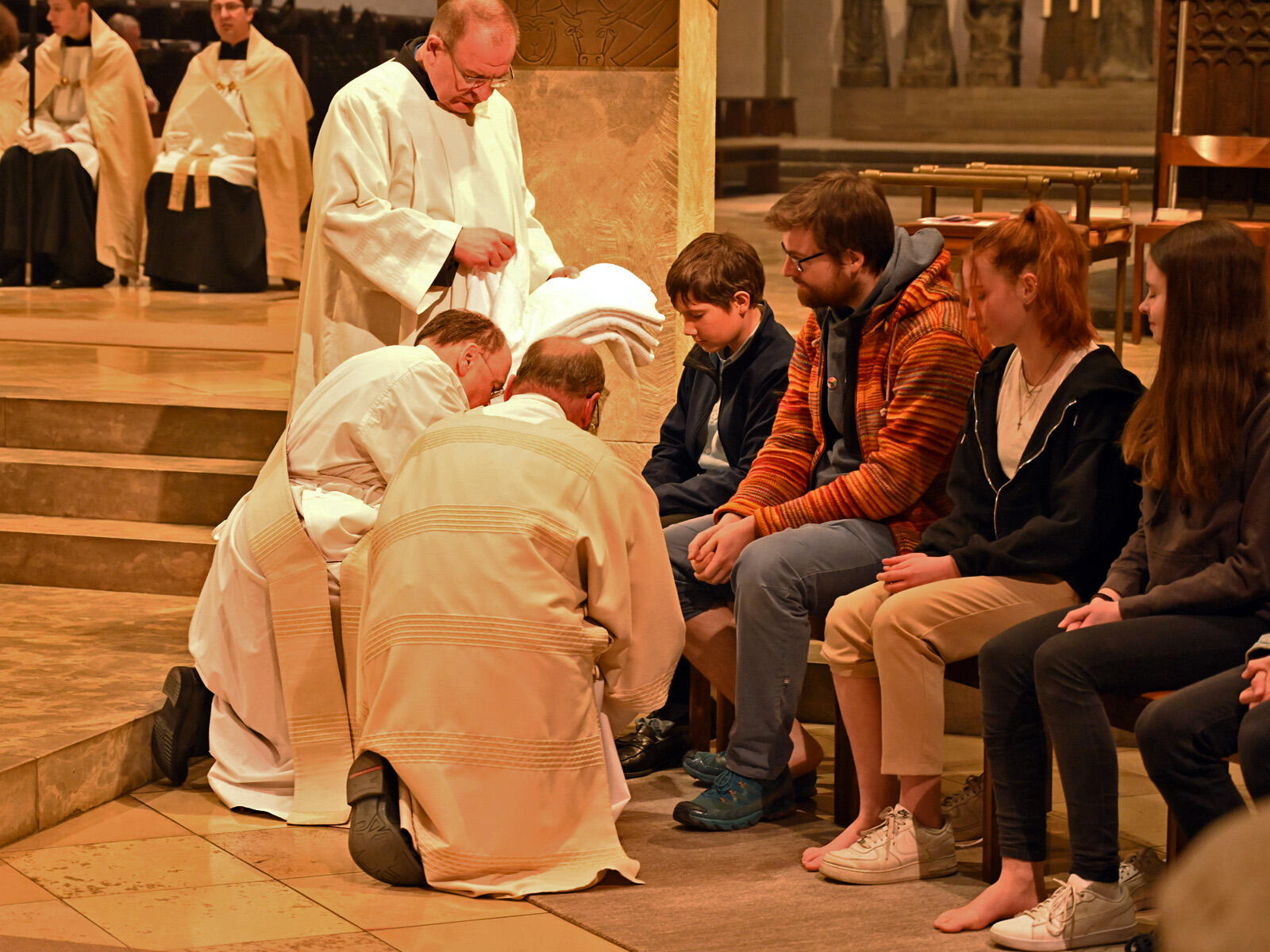 Zu Beginn des österlichen Triduums als Hauptfest der Christenheit steht der Gründonnerstag, in dem an das letzte Abendmahl Jesu mit seinen Jüngern erinnert wird. In einem Festgottesdienst im Hohen Dom wusch Bischof Bertram in Erinnerung des Dienstes Christi an den Menschen zwölf Jugendlichen aus dem Bistum die Füße und betonte in seiner Predigt, dass die Eucharistie nicht nur Brot und Wein verwandle, sondern auch den Menschen selbst.