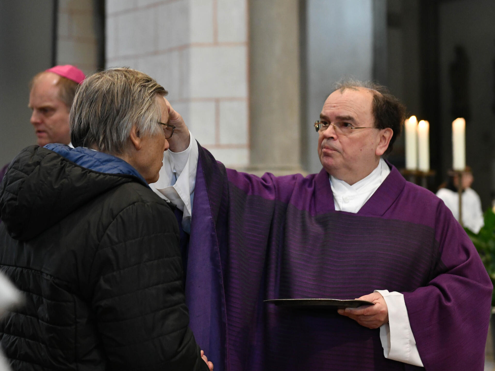 In seiner Predigt ging der Diözesanadministrator auf den Menschen und dessen Vergänglichkeit näher ein. Gerade bei der heutigen Aschenauflegung und dem Ausspruch „Memento homo: Du bist nur Staub“ werde einem diese schmerzlich vor Augen geführt, betonte er. „Unser Herz hungert nach dem Bleibenden, Ewigen, Unendlichen, nach dem Heil. Findet diese Sehnsucht nicht einen besonderen Ausdruck in der Kunst?“, richtete er seine Frage direkt an die zahlreichen Kunstschaffenden im Augsburger Dom. Gerade Künstler könnten zeigen, dass der Mensch eine Art Grenzgänger ist, bestehe die Kunst aller Künste doch darin, im Menschen den Spuren Gottes nachzugehen, so der Prälat.