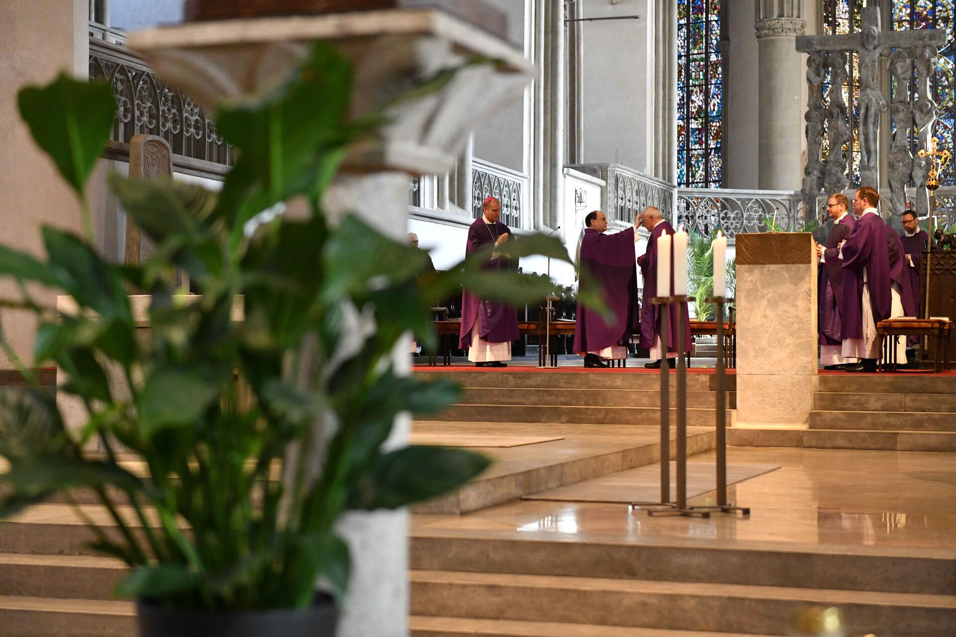 „Die Kunst kann eine Schule des Sehens auf das Wesentliche werden“, betonte Dr. Meier und bedankte sich bei den Künstlern für ihren Dienst an der Wahrheit über den Menschen: „Decken uns nicht gerade die Künstler die Wunden und Abgründe des Menschen auf? Literatur und bildende Künste sind Seismographen, die uns auf Erschütterungen und Bewegungen aufmerksam machen, die Beben registrieren, die sich unter der Oberfläche in den Tiefen des Menschenherzens abspielen.“ Den Bogen vom heutigen Aschermittwoch zu Ostern spannte er abschließend mit einem Blick auf die kommenden Tag der Fastenzeit: „Wir sind eingeladen, diesen Weg vom ‚Memento homo‘ zum ‚Ecce homo‘ mitzugehen, vom Geheimnis des Menschen zum Geheimnis der Erlösung“, so der Diözesanadministrator.