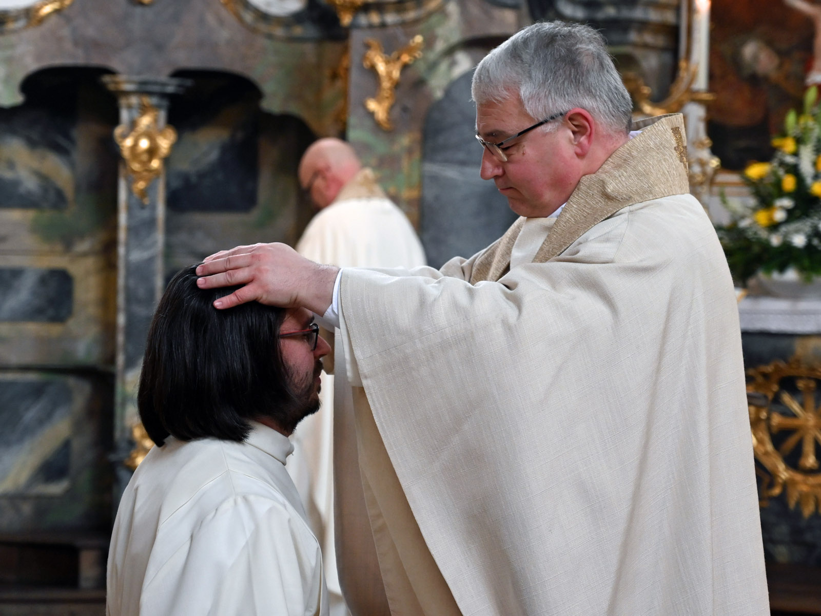 Der als Andreas Schuler 1990 in Günzburg geborene Prämonstratenser hatte bereits im September 2019 seine Ewige Profess abgelegt, wurde dann im Anschluss an sein Studium in Regensburg im Oktober 2021 zum Diakon geweiht und bekam nun ebenfalls durch Bischof Dr. Bertram Meier in der Klosterkirche des Priorates Roggenburg die Priesterweihe gespendet. Erste Erfahrungen in der Pastoral hat er in der Pfarreiengemeinschaft Babenhausen gesammelt, gleichzeitig unterrichtete er auch Religion an der Volksschule in Roggenburg.