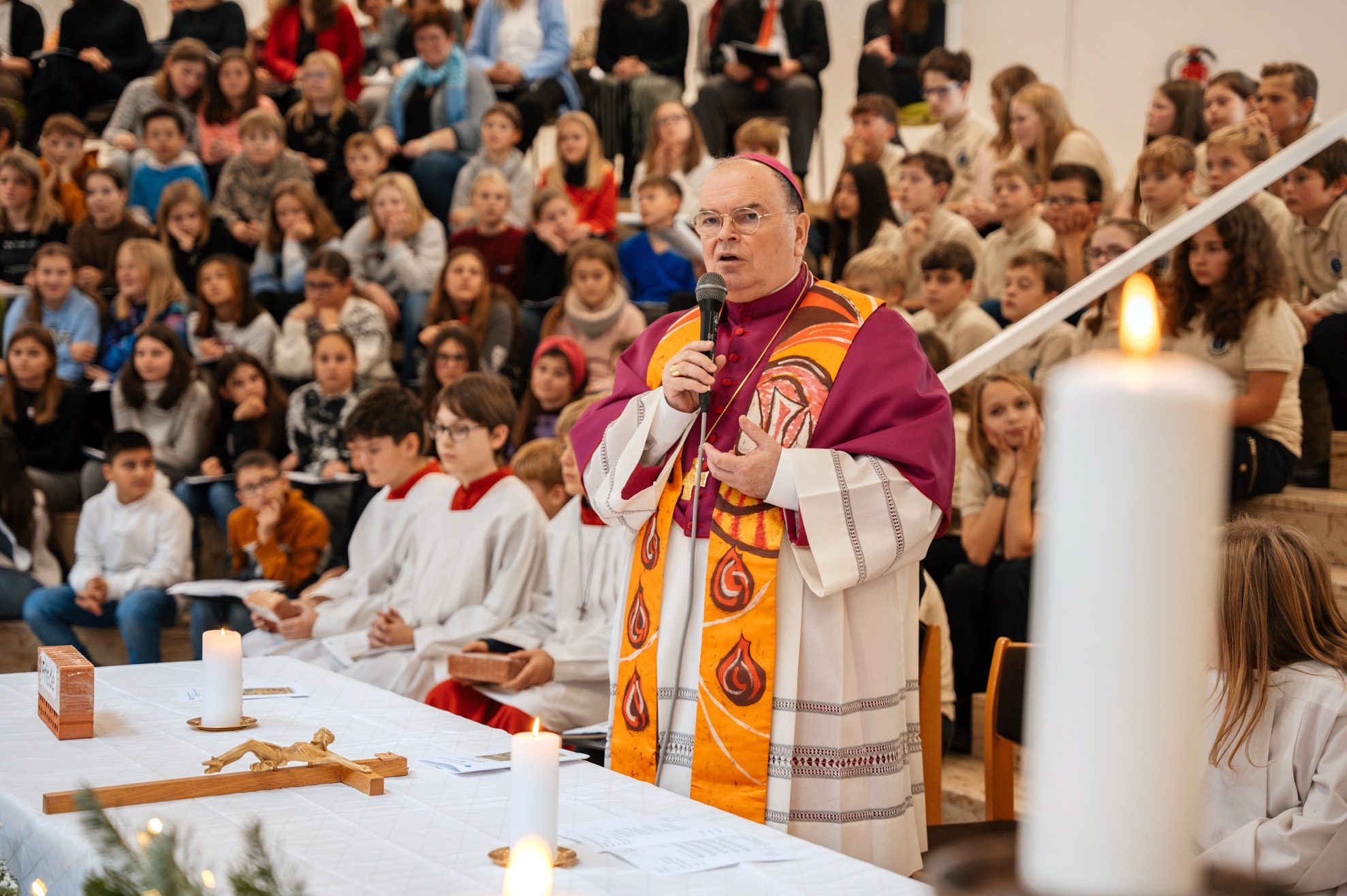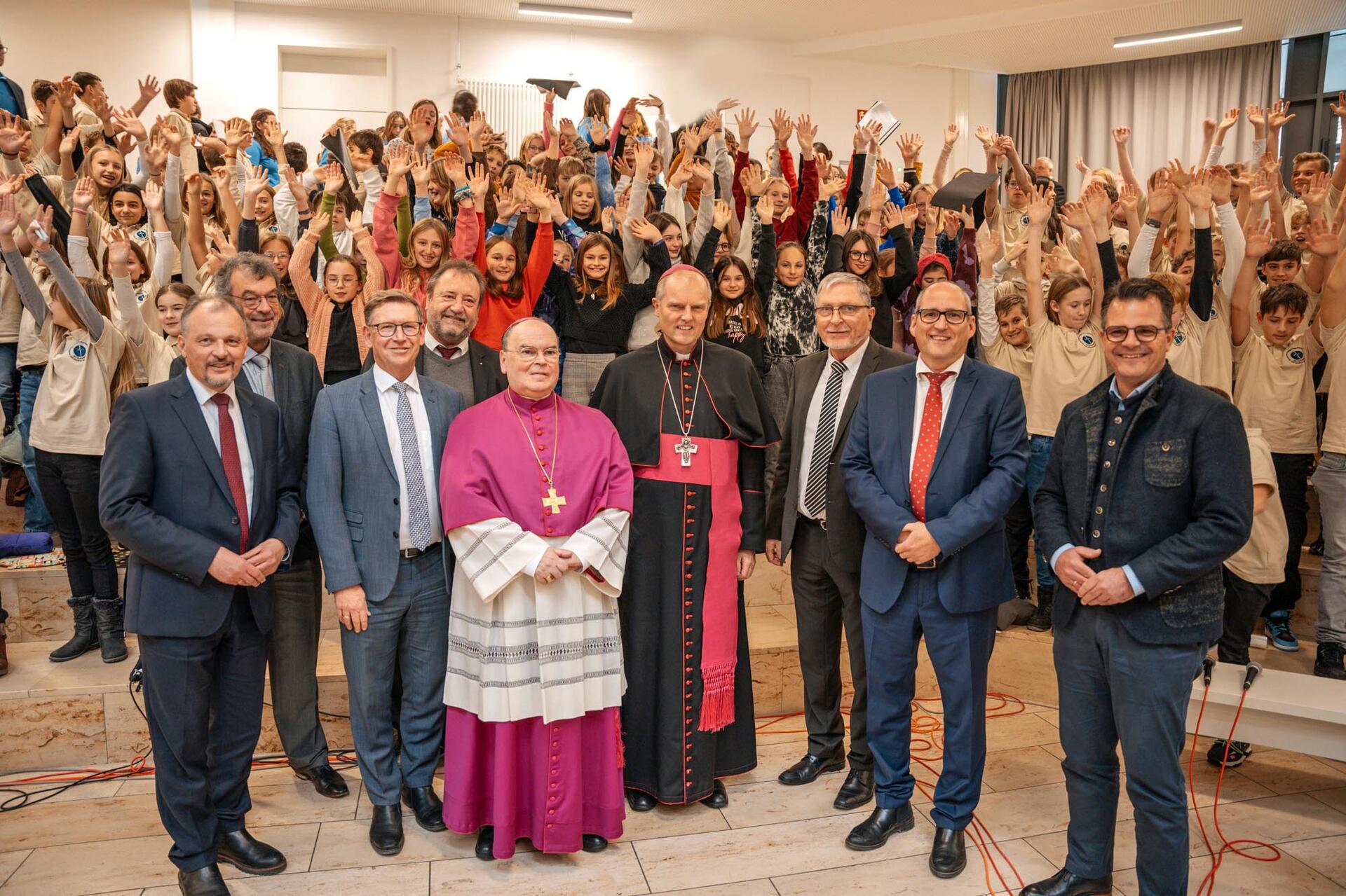 Die gemeinsame Segensfeier bildete den krönenden Abschluss dieser aufregenden drei Jahre. Bischof Bertram segnete die neuen Räumlichkeiten und betonte, wie wichtig es sei, in Kinder und Jugendliche zu investieren und dankte allen, die sich für sie an den beiden Donauwörther Realschulen engagieren. Er gab den Schülerinnen und Schülern sinnbildlich, aber auch ganz konkret, drei Grundsteine für ihre Zukunft mit auf den Weg: Friede, Weisheit und Mut.