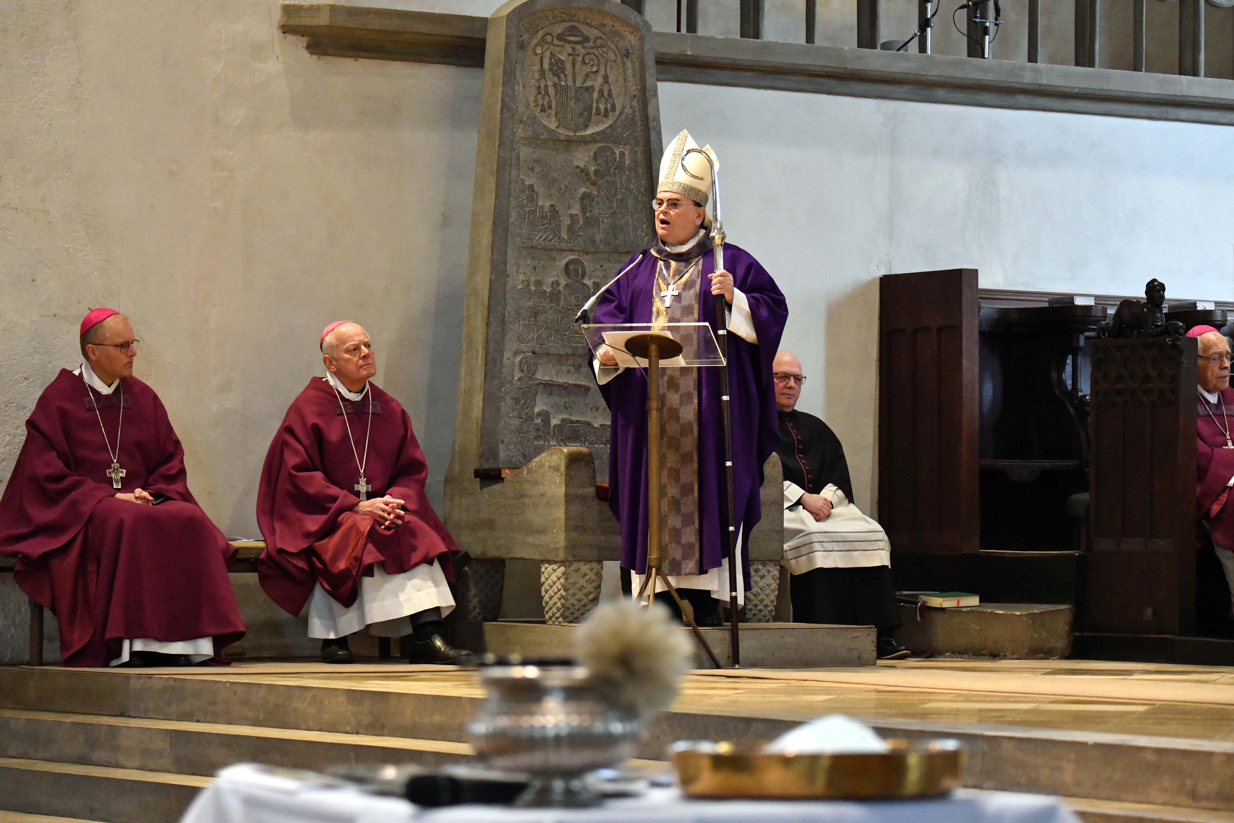Den geladenen Kunstschaffenden wies Bischof Bertram bereits während des feierlichen Gottesdienstes beim Vermitteln und Verbreiten der Aschermittwochsbotschaft eine ganz eigene Rolle zu: „Sie, liebe Kunstschaffende, gehören seit Jahrtausenden zu jenen Menschen, die Seh- und Hörgewohnheiten bewusst unterlaufen, die Mächtige nicht schwei­gend gewähren lassen, sondern ihnen den Spiegel vorhalten, die dem, was Menschsein und In-der-Welt-Sein ausmacht, auf den Grund gehen und dabei seismografisch Veränderungen, ja sogar Revolutionen vorwegnehmen.“