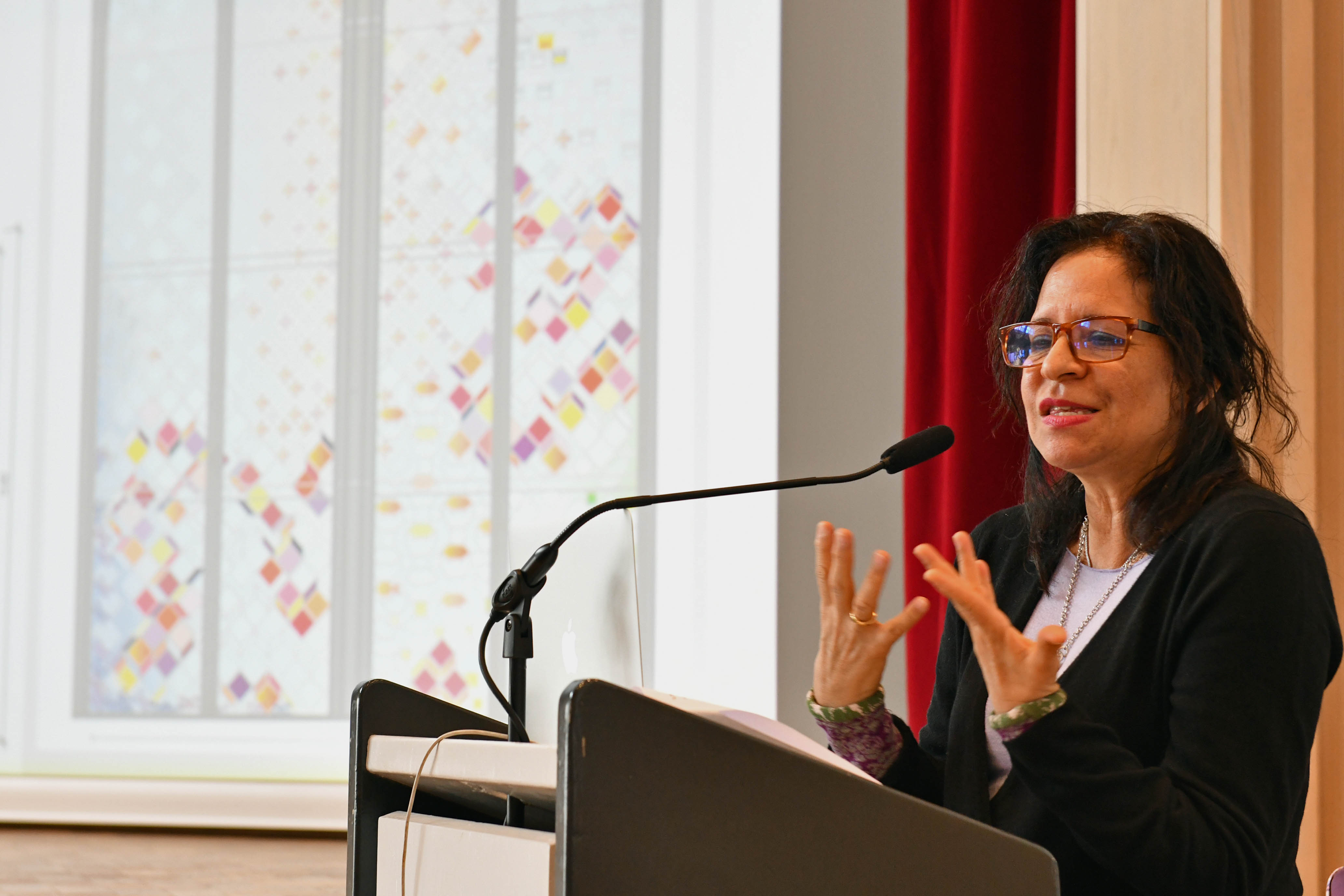Exemplarisch für das reiche künstlerische Schaffen auf dem Gebiet des Bistums stand an diesem Tag das neue Ulrichfenster auf der Südseite des Hohen Domes. Im Anschluss an den Gottesdienst im einen Steinwurf entfernten Kolpinghaus gab es beim traditionellen Aschermittwoch der Künstler neben Begegnung und Austausch interessante Einblicke durch Dr. Celia Mendoza in das von ihr gestaltete Fenster. Dabei ging sie, nachdem Hauptabteilungsleiterin Prof. Dr. Gerda Riedl die rund 100 geladenen Gäste begrüßt hatte, nicht nur auf die abstrakte Symbolsprache ihres aus einem Künstlerinnenwettbewerb als Sieger hervorgegangenen Entwurfs ein.