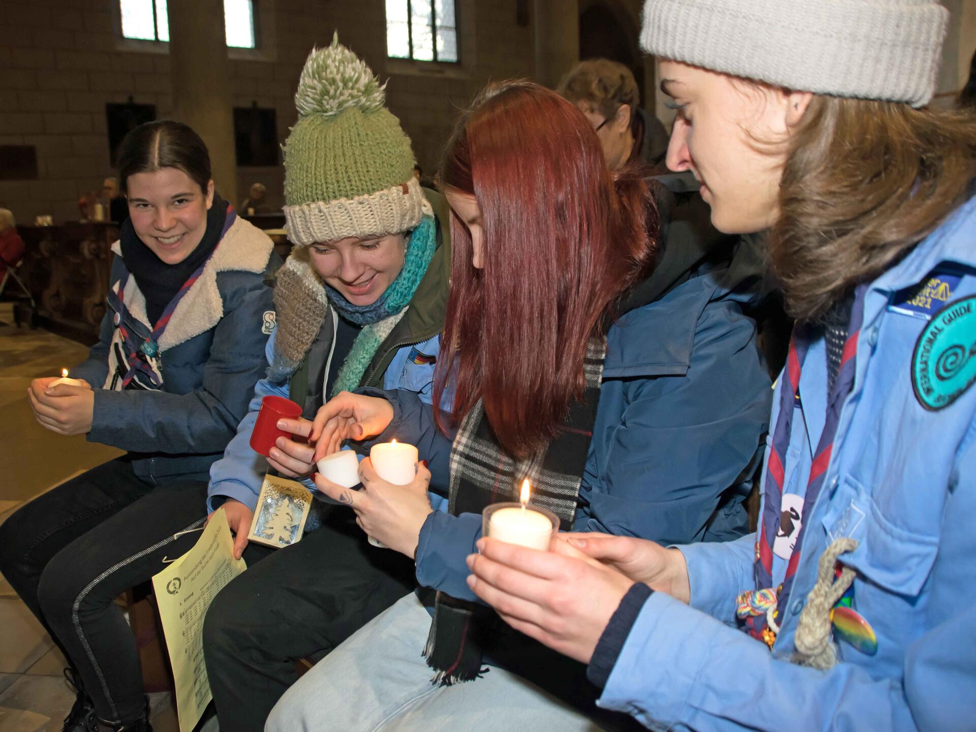 Das Friedenslicht aus Bethlehem ist am dritten Adventssonntag in einem Aussendungsgottesdienst im Augsburger Dom weitergereicht und in die Pfarreien des Bistums verteilt worden. Vier Pfadfinderinnen aus Stämmen der Pfadfinderinnenschaft St. Georg (PSG) holten das Friedenslicht heuer in Linz ab, brachten es nach Augsburg und übergaben es bereits am Abend des zweiten Adventssonntags an Bischof Bertram.