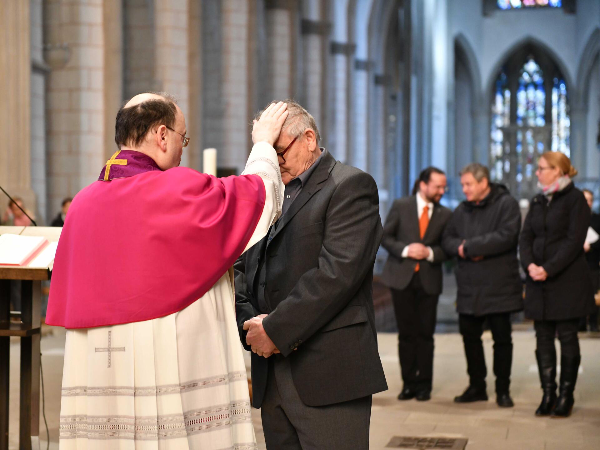 Nach der Predigt stellten die Vertreter aus den jeweiligen Pfarreien dem Diözesanadministrator die Tauf- und Firmbewerber vor. Sie baten Prälat Meier um die Zulassung der Kandidaten zu den Sakramenten des Christwerdens und überreichten ihm ein Empfehlungsschreiben. Der Diözesanadministrator legte danach jedem einzelnen Bewerber die Hand als Zeichen des Segens auf.