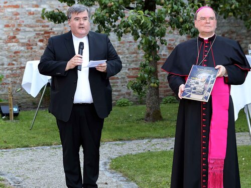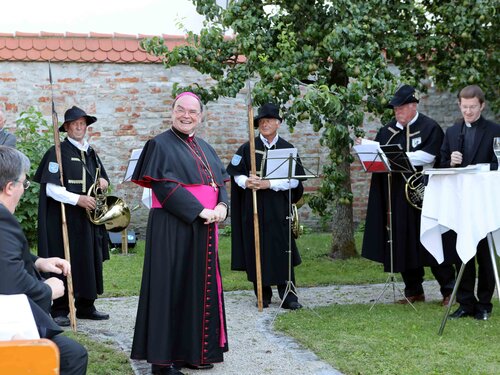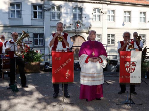 Bevor sich die Gäste anschließend noch zu einer Begegnung im Garten des Bischofshauses aufmachten, wo Bischof Bertram auch die Festschrift überreicht wurde, gab es vor dem Dom noch ein Standkonzert des Musikvereins Leitershofen.